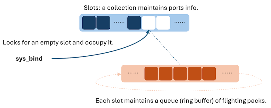 对于每个槽位,我们需要维护端口号以及刚刚我们提到的 ring buffer。ring