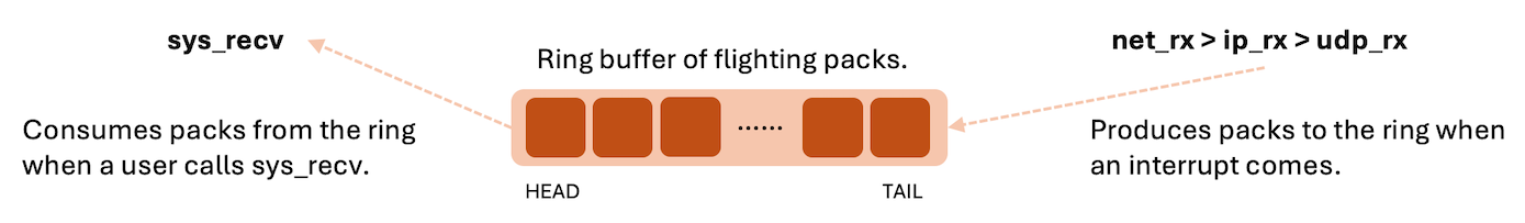 这里的生产者是 net_rx 函数:每当网卡检测到有新的数据可以被 receive