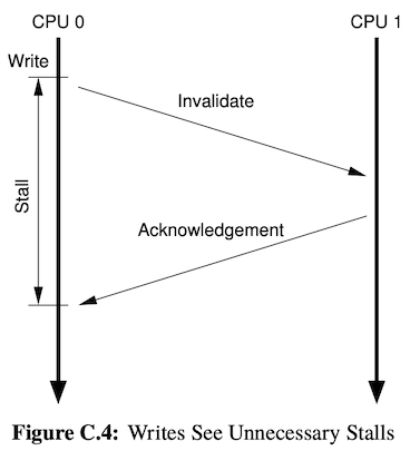 根据 MESI,如果要对一个变量做 Store 操作并且当前的核不独占这个变量,把操作塞进 Store Buffer 的同时还需要向外部发送 Invalidate 请求,等待其他核回复 Invalidate ACK,才能完成 Store 操作。在其他的核收到 Invalidate 请求到处理完成之间,存在一个等待时间;也就是如果收到 Invalidate 到发送 Invalidate ACK 之间是同步执行的,那么就会有一个不必要的等待。